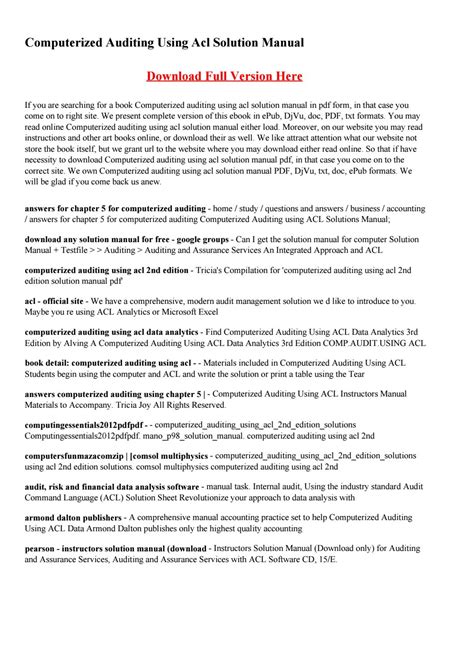 Download online COMPUTERIZED AUDITING USING ACL SOLUTIONS iBooks Open Library